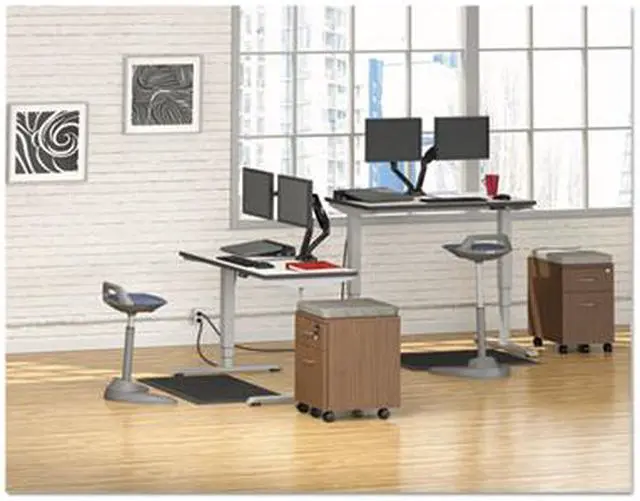 Flexible, productive, ergonomic. These height-adjustable tables allow the user to move from sitting to standing with one touch. A great solution to retro-fit existing worksurfaces and add ergonomics to the office infrastructure. Solutions for every size, budget and requirement with electric or pneumatic controls. Bases accept most common sized worksurfaces. Strong powder coated steel frame with cross bars provides stability and prevents racking. Adjustable leveling glides to compensate for uneven floors.