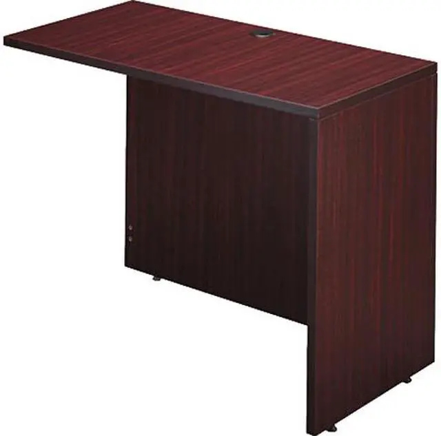 Universal application as either Return or Bridge. 1 thick worksurface and side panels are water-, scratch- and dent-resistant. Full-height modesty panel. Adapts to right- or left-handed configurations. Fitted with one wire management grommet for increased organization and safety. Protective 3 mm edge banding. Color: Mahogany; Overall Width: 42"; Depth Maximum: 23 5/8"; Overall Height: 29 1/2".