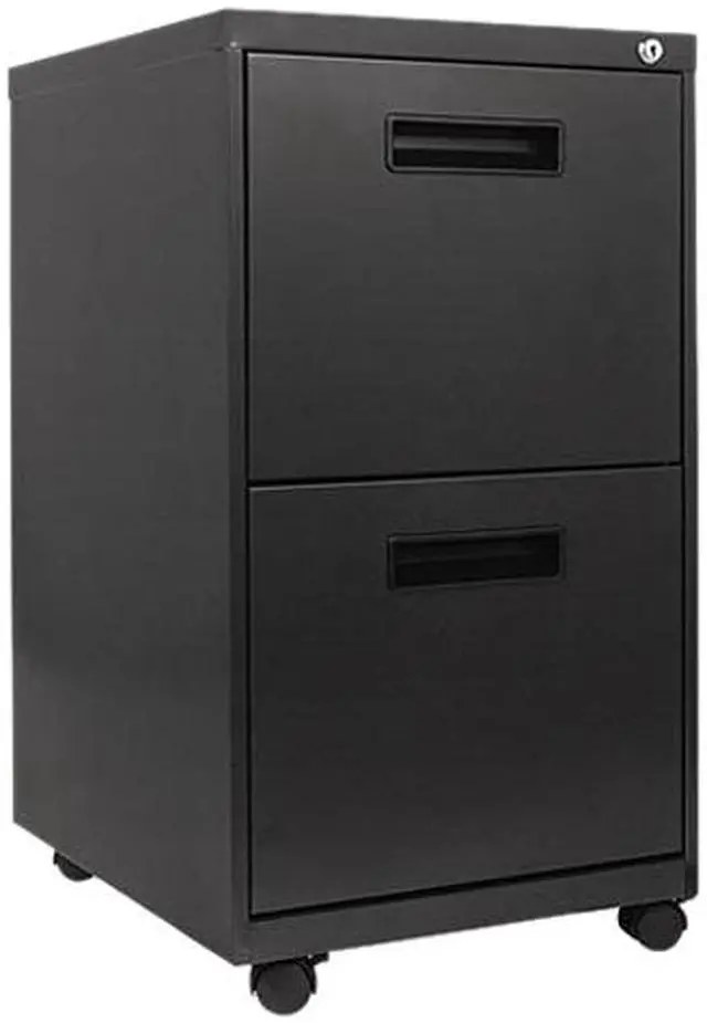 High-sided file drawer accommodates letter/legal filing. Counterweight prevents tipping. Visible easy-access casters, two locking. Steel ball bearing slide suspension with 3/4 extension on box drawers and full-length extension on file drawers. Full-length pull permits easy opening. Box drawers include one divider and pencil tray. File/File, Two 12" high file drawers. Color: Charcoal; Overall Width: 14 7/8"; Overall Depth: 19 1/8"; Overall Height: 27 3/4".