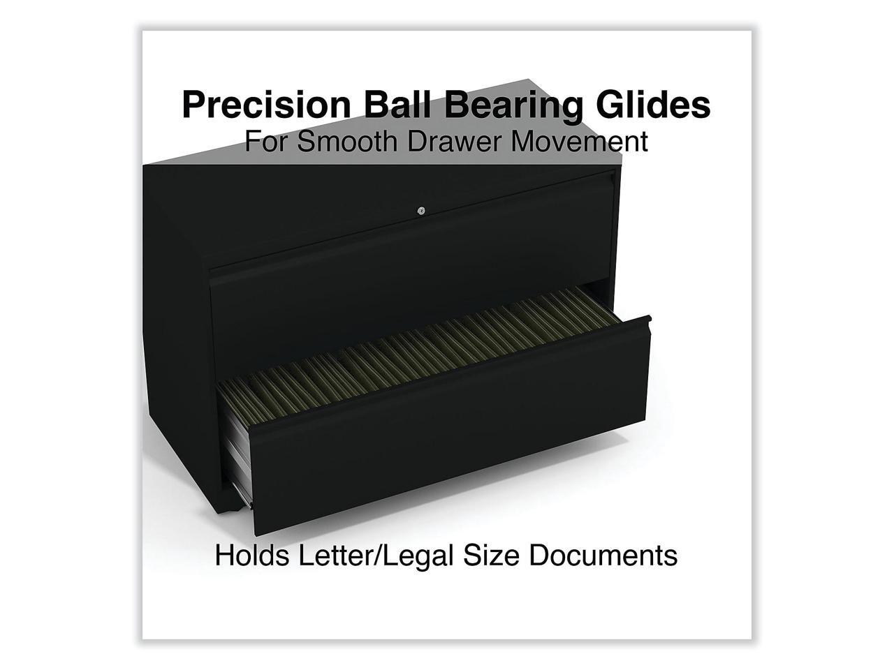 - Full drawer extension on steel ball bearing telescoping slide suspension. Four adjustable leveling glides. Dimensions 29" H x 42" W x 19 1/4" D. Five-year limited warranty for added peace of mind.