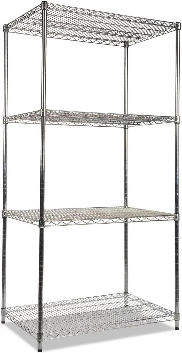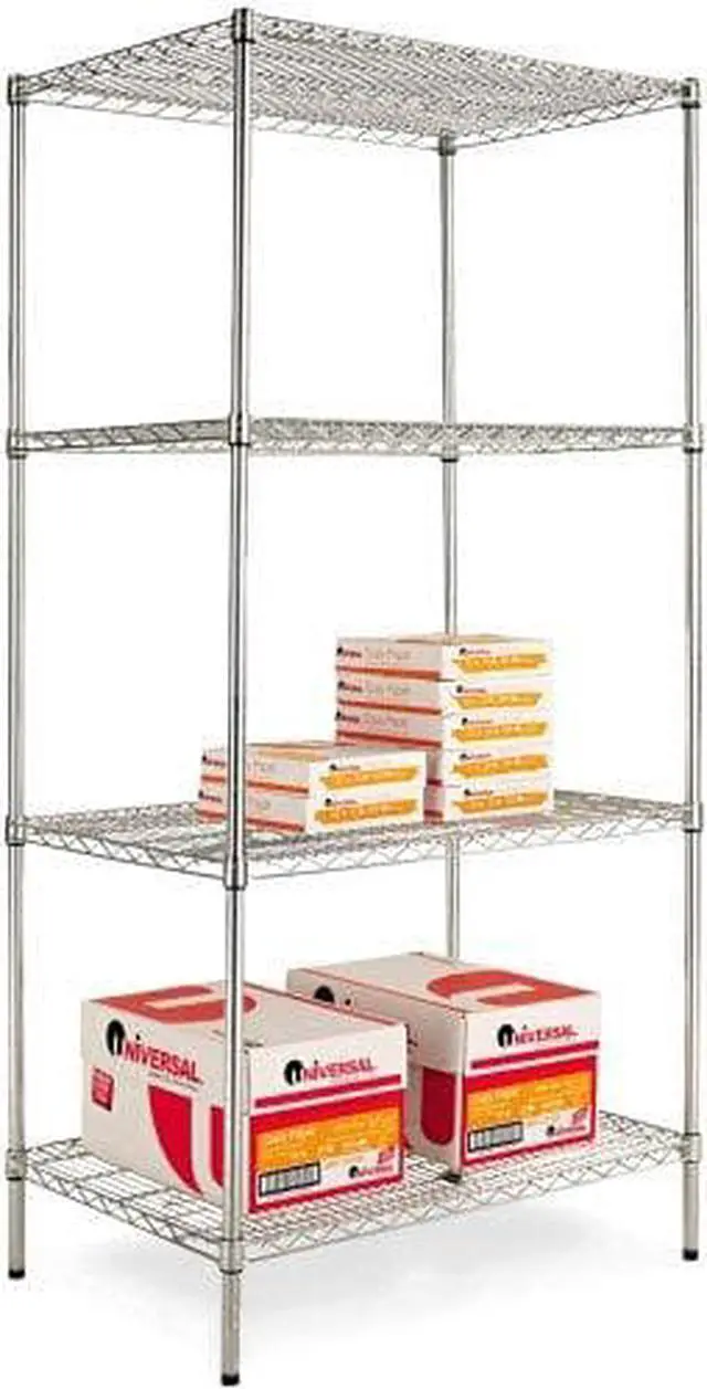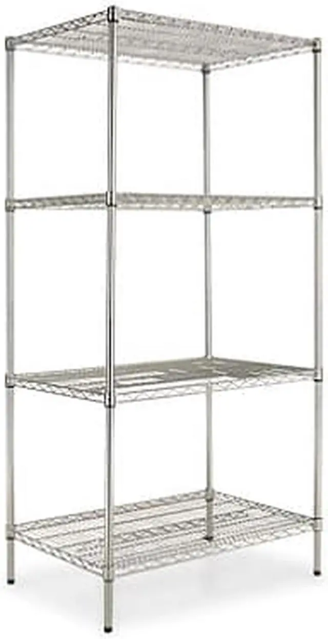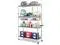 Ideal storage solution for industrial and commercial use. Snap-together design assembles in minutes. Strong welded wire construction. Can be set up as a four-tier single rack or as two two-tier racks to meet specific needs. Open design allows air circulation and reduces dust build-up.