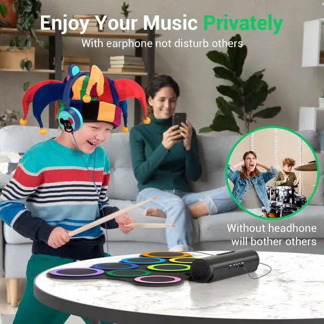 With a wired headphone included, our drum pad set allows you to play anywhere you feel inspired to drum without barriers or disturbing