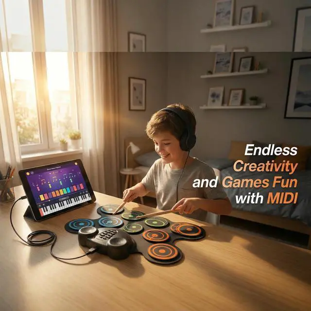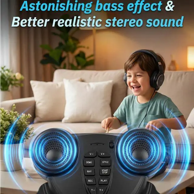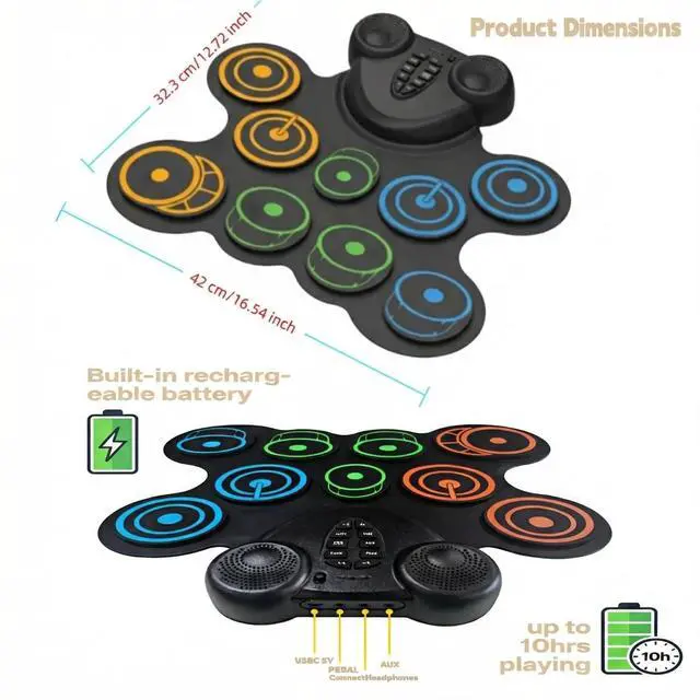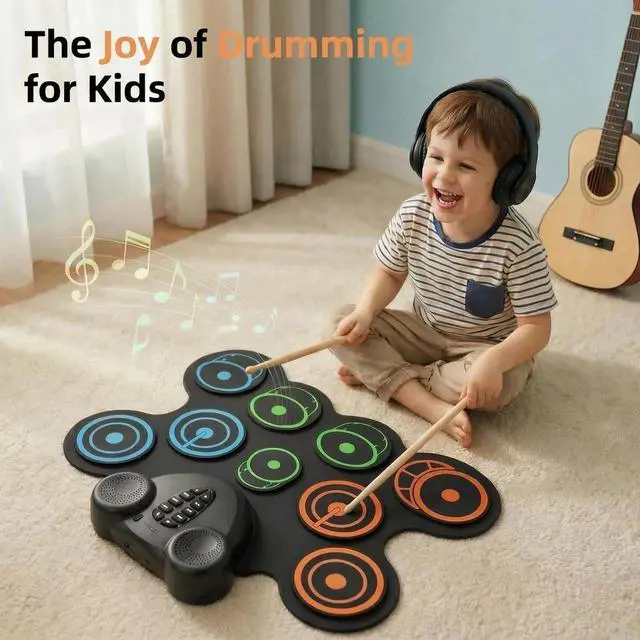 All-in-One Gift Set Ready to Use. Comes complete with drumsticks, foot pedals, and a built-in rechargeable batteryno extra purchases needed. Perfect as a birthday, holiday, or educational gift for young drummers, offering hours of fun and skill-building play