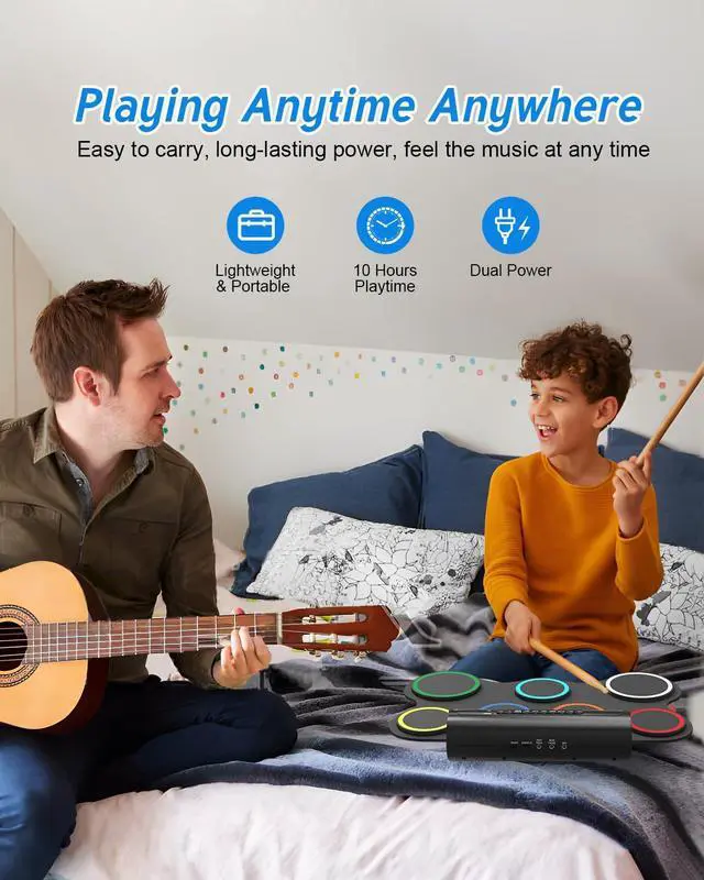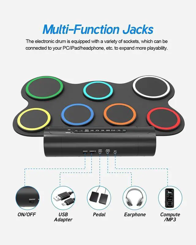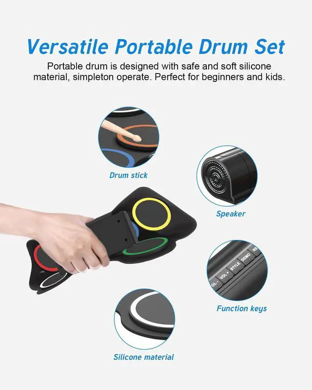 Drum pads are made of high quality waterproof soft silicone, safe and easy to clean