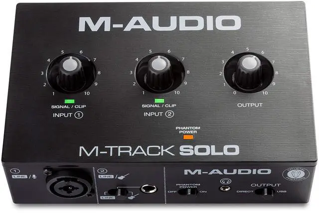 MTRACKSOLOII, M-AUDIO, 2, 48 KHz, USB Type B, Mic Input Balanced XLR, Line Input Balanced 1/4" TRS, Mic Input Balanced XLR, Line Input Balanced 1/4" TRS, Instrument Input Unbalanced 1/4" TS, Ableton Live Lite, MPC Beats, Reason+ (6-month subscription) and Others