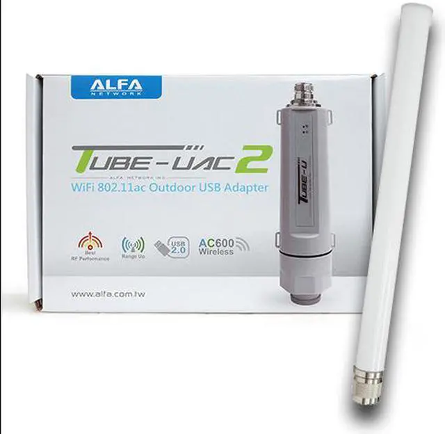 More Details: Alfa Tube-UAC2 easily fastens to your boat or RV, or an outdoor pole or post. It has weatherproof casing and it comes with a special shielded 5 meter (16 feet) USB cable that is designed to prevent against power loss. This allows you to mount this item further away from where you will be using your computer. You can connect any type of antenna to this product that has an N-male connector on it (the Tube-UAC2 comes with a N-female connector, which is different from previous generation Tube models). We also sell pigtails and converters if you already own an outdoor antenna with a different connector type.