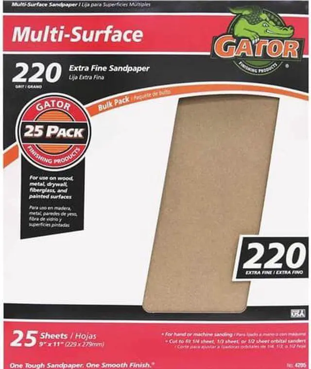 For use on wood, metal, plastic, and painted surfaces. Features resin coating that outlasts ordinary glue bond sandpaper. 9" x 11" sheets. Packed 25 sheets per box. No. 4211: Grit: 60, Grade: Coarse, Length: 11", Width: 9", Abrasive Material: Aluminum Oxide, For Use With: Rough sanding, Pkg Qty: 25, Package Type: Box No. 4210: Grit: 80, Grade: Medium, Length: 11", Width: 9", Abrasive Material: Aluminum Oxide, For Use With: Surface preparation before painting, Pkg Qty: 25, Package Type: Box No. 4209: Grit: 100, Grade: Medium, Length: 11", Width: 9", Abrasive Material: Aluminum Oxide, For Use With: Surface preparation before painting, Pkg Qty: 25, Package Type: Box No. 4208: Grit: 120, Grade: Fine, Length: 11", Width: 9", Abrasive Material: Aluminum Oxide, For Use With: Final preparation before painting, Pkg Qty: 25, Package Type: Box No. 4207: Grit: 150, Grade: Fine, Length: 11", Width: 9", Abrasive Material: Aluminum Oxide, For Use With: Final preparation before painting, Pkg Qty: 25, Package Type: Box No. 4206: Grit: 180, Grade: Extra Fine, Length: 11", Width: 9", Abrasive Material: Aluminum Oxide, For Use With: Between coats of polyurethane, Pkg Qty: 25, Package Type: Box No. 4205: Grit: 220, Grade: Extra Fine, Length: 11", Width: 9", Abrasive Material: Aluminum Oxide, For Use With: Between coats of polyurethane, Pkg Qty: 25, Package Type: Box No. 4214: Grit: 36, Grade: Extra Coarse, Length: 11", Width: 9", Abrasive Material: Aluminum Oxide, For Use With: Rough sanding, Pkg Qty: 25, Package Type: Box No. 4212: Grit: 50, Grade: Coarse, Length: 11", Width: 9", Abrasive Material: Aluminum Oxide, For Use With: Rough sanding, Pkg Qty: 25, Package Type: Box Thanks for shopping Hipp Hardware Plus's Online Store for all your DIY and Home Improvement needs. Remember Hipps Help!