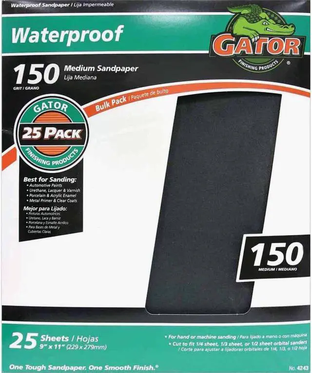 Ideal for wet sanding between coats of paints, sealers, varnish, and other finishes. Features resin coating that outlasts ordinary glue bond sandpaper. 9" x 11" sheets. Packed 25 sheets per box. No. 4244: Grit: 120, Grade: Coarse, Length: 11", Width: 9", Abrasive Material: Silicon Carbide, For Use With: For metal working and body leveling, Pkg Qty: 25, Package Type: Box No. 4243: Grit: 150, Grade: Medium, Length: 11", Width: 9", Abrasive Material: Silicon Carbide, For Use With: For metal working and body leveling, Pkg Qty: 25, Package Type: Box No. 4242: Grit: 180, Grade: Fine, Length: 11", Width: 9", Abrasive Material: Silicon Carbide, For Use With: For metal working and body leveling, Pkg Qty: 25, Package Type: Box No. 4241: Grit: 220, Grade: Extra Fine, Length: 11", Width: 9", Abrasive Material: Silicon Carbide, For Use With: Smoothing of primers, Pkg Qty: 25, Package Type: Box No. 4240: Grit: 320, Grade: Very Fine, Length: 11", Width: 9", Abrasive Material: Silicon Carbide, For Use With: Smoothing of primers, Pkg Qty: 25, Package Type: Box No. 4239: Grit: 400, Grade: Super Fine, Length: 11", Width: 9", Abrasive Material: Silicon Carbide, For Use With: Smoothing of primers before painting, Pkg Qty: 25, Package Type: Box No. 4238: Grit: 600, Grade: Ultra Fine, Length: 11", Width: 9", Abrasive Material: Silicon Carbide, For Use With: Smoothing of primers before painting, Pkg Qty: 25, Package Type: Box No. 4237: Grit: 1500, Grade: Mirror Fine, Length: 11", Width: 9", Abrasive Material: Silicon Carbide, For Use With: Sanding paint right before you polish, Pkg Qty: 25, Package Type: Box Thanks for shopping Hipp Hardware Plus's Online Store for all your DIY and Home Improvement needs. Remember Hipps Help!