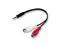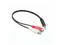 2-RCA stereo audio Y adapter cable one end has a female 3.5mm stereo mini jack and the other end has two color-coded male RCA plugs (left and right audio channels).