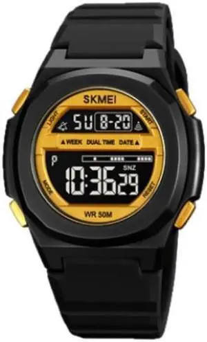 SKMEI 1821 Stainless Steel Buckle Silicone Strap Electronic Watch (Black Gold)