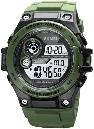 SKMEI 1759 Dual Time Digital Display Waterproof PU Leather Strap Luminous Electronic Watch (Army Green)