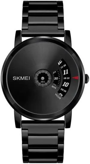 SKMEI 1260 Fashion Creative Pointer 30m Waterproof Quartz Wrist Watch with Stainless Steel Watchband (Jet Black)
