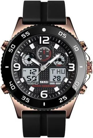 SKMEI 1538 Multi-Function Time Large Dial Steel Belt Men Casual Sports Electronic Watch (Black-Silicone Belt)