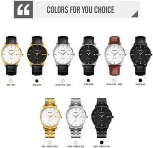 CAGARNY 6872 Living Waterproof Round Dial Quartz Movement Alloy Gold Case Fashion Watch Quartz Watches with Leather Band (Black)