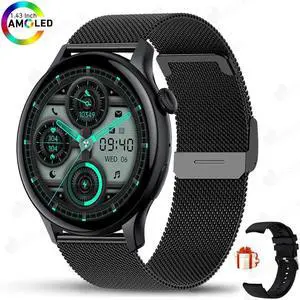 Ladies Smartwatch 466*466 AMOLED Screen Moment Display Time Bluetooth Call Watches NFC Men IP68 Heart Rate Smart Watch sport
