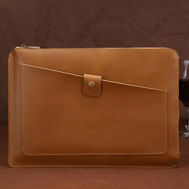 1. Genuine leather material, simple and comfortable. 2. Good craftsmanship and soft lining, protecting your laptop from shock, bump, scratch, splash and dust. 3. Compatible with 12 inch and below laptop (Such as suitable for Macbook Air 11.6 inch, Macbook 12 inch, etc) or tablet. 4. Note: Not include the phone, glasses, bottle and other objects.