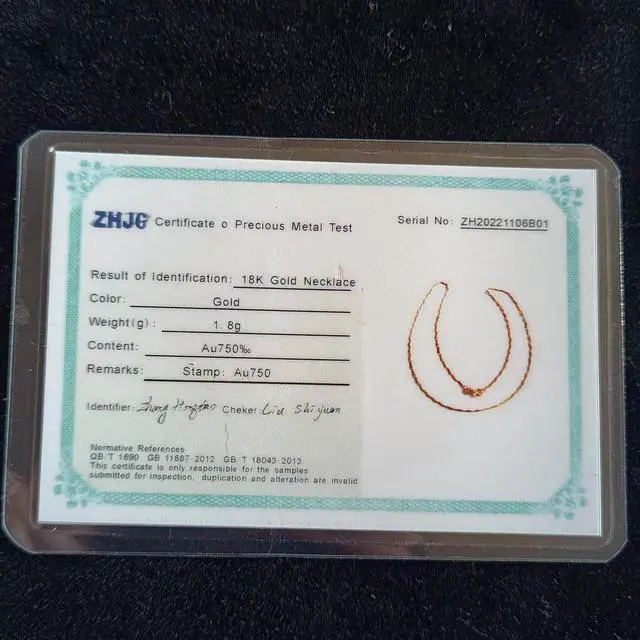 Metal: 18k real gold, comes with certificate, Au750 stamped Not gold filled or plated Chain Length: 45cm Net weight: 1.8g Comes with jewelry box, giftable
