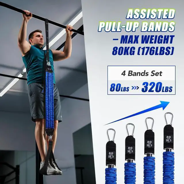 4 x 80 lbs Resistance Bands – Recommended for Users up to 176LBS (80KG)