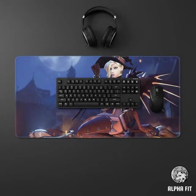 Add a touch of magic to your battle station with this enchanting anime mouse pad. Featuring a beloved winged healer in her iconic Halloween witch costume, this design combines fantasy aesthetics with competitive function. The moonlit backdrop and detailed character art make this gaming mouse pad a magical centerpiece. As a reliable large mouse pad, it provides the smooth glide needed for those clutch healing moments, ensuring your team never falls.