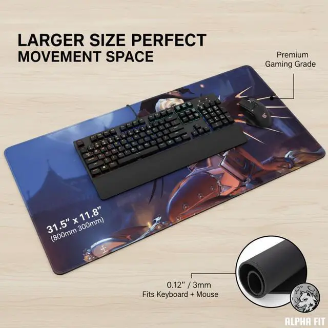 1 x Alpha Fit Extended Anime Gaming Mouse Pad (Style as selected)