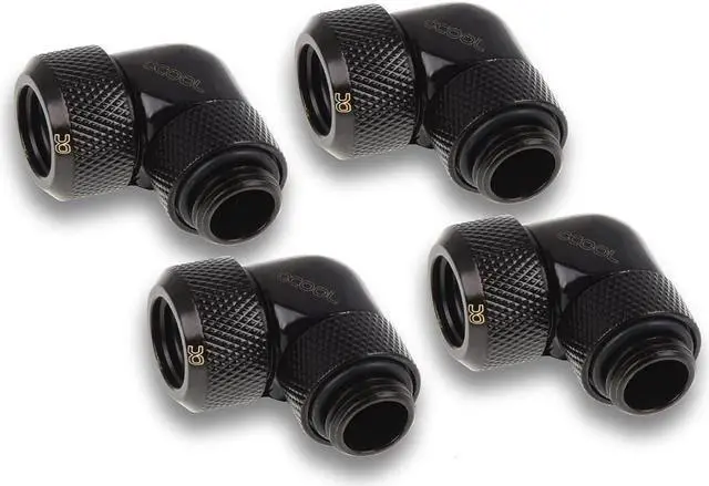 Model: 90 compression fitting 13mmThis fitting has a G1/4" thread on one side and is thereby compatible with 95% of components. The other side fits a 13mm acrylic or brass tube. This fitting is bent 90 in the middle to avoid complicated hose connections. The threaded side is rotatable for maximum flexibility. Technical data Material brass L x W 42, 5 x 21mm Threads G1/4" OT | 13mm (OD 1/2") Thread length 5mm Possible rotation 360 Version 90 angled Color black Datasheet (EN)