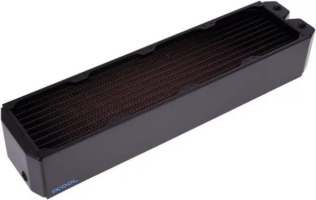 Fin spacing is always an important factor in radiator design. The new series from Alphacool has a fin design which allows it to perform extremely well even with slow-spinning and medium-speed fans. This is not only pleasant thanks to the fact that it avoids unnecessary noise; it also means that the choice of fans that can be used with these radiators is not restricted. Even mounting and installation of fans and radiator grills is easy and versatile with these radiators. Even the dreaded insertion of a screw too far into the radiator does not result in expensive damage.