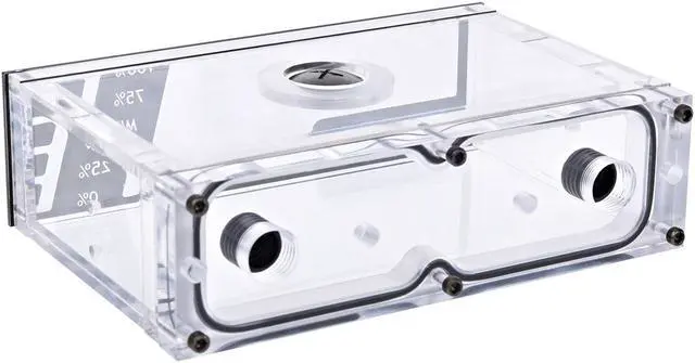 The second version of the Alphacool Repack Single Bayres 5, 25" is now available! Based on the development of the Alphacool Repack Dual 5.25 Bay Station, this Bay reservoir also brings its advantages to the table: Easy mounting, compact dimensions and appealing design! All of these features and many more are implemented in the Alphacool Repack Single Bayres. Designed for installation in a vacant 5.25 ” drive bay, this reservoir allows compact installation and is a great addition to the front of your enclosure. Connection to the reservoir can be achieved via the implemented ¼” threads for maximum compatibility and flexibility. Construction-wise, this reservoir is also a great piece of hardware: Extra-strong Plexi increases stability of the reservoir and ensures extra rigidity. Filling can be done via the 3/8” thread in the front third of the reservoir, which is sealed with a black nickel plated screw plug during operation. By simply pulling the reservoir forward from the drive bay, it can be filled easily. Make it even easier for yourself by connecting a Fillport! Installation of the reservoir is done just like mounting on an optical drive, making it quick and easy for any user!