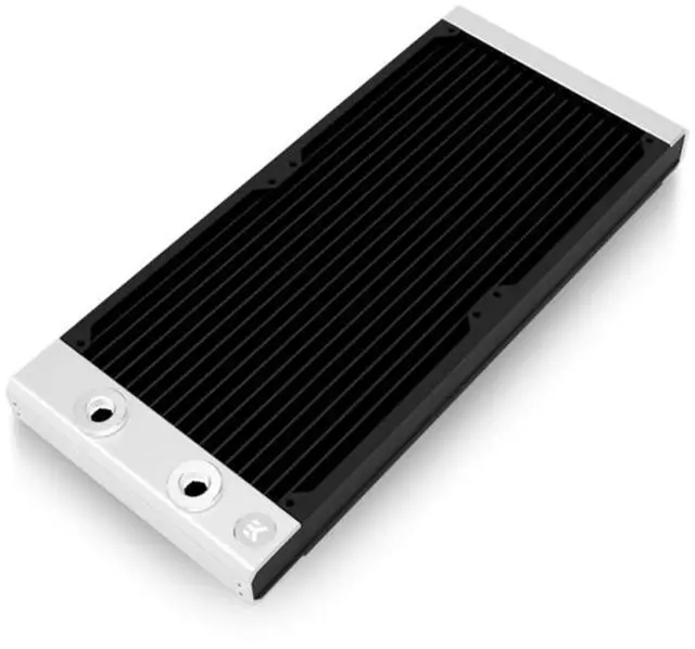 For those who demand the most cooling power out of an EK-Quantum Surface radiator, the 58mm-thick X Series is the right choice. These thick radiators will benefit the most from medium and high-speed fans or even a Push/Pull setup. Equipped with a total of four G1/4" threaded connection ports, the X Series provides additional versatility during the loop planning process. The fifth G1/4" port located on the end-tank is an irreplaceable feature when it comes to draining the loop and air bleeding. A total of sixteen 2mm wide copper tubes across the entire radiator ensure optimal coolant flow, putting no stress on your cooling loop. High-grade non-louvered copper fins with 18 FPI density provide the best balance between thermal transfer and air resistance. EK doesn't recommend using slow-running fans on X Series EK-Quantum Surface radiators as they require adequate airflow to remove more heat than they absorb in their thick core. Set into the aluminum accent end caps are modular plugs and extenders that can be interchanged and configured by the user for optimal tube routing. This multiport radiator has two additional G1/4" threaded connection ports on the side and one extra port on the opposing end for air bleeding. Dimensions: 325 x 145 x 58mm (L x W x H) Weight: 1.93kg FPI: 18 Port threads: 5x G1/4" Fan compatibility: 140x140x25mm fan Pressure tested: 1bar Enclosed: - EK-Quantum Surface X series radiator - 8x Phillips Slotted M4x30mm for 25mm thick fans - 8x Phillips Slotted M4x5mm for mounting the radiator directly to the case - 6mm steel Allen (Hex) key - 9mm steel Allen (Hex) key Model: 3831109838853