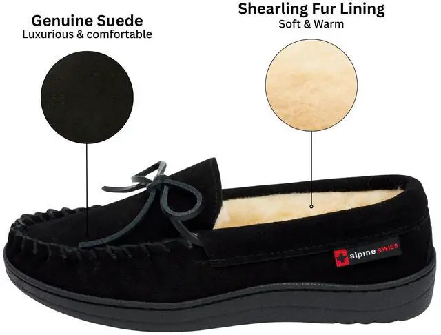 quality suede: moccasin-style slippers made from genuine suede, available in various colors.