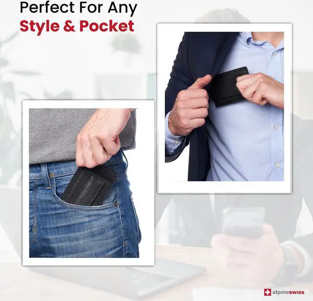 GIFT BOXED & FRONT POCKET OPTIMIZED - Arrives in elegant Alpine Swiss gift box, perfect for Father' s Day, birthdays, or professional gifts. Designed for comfortable front pocket carry - enhanced security against pickpockets while eliminating sitting discomfort. Ideal for business professionals, travelers, and anyone seeking organized minimalism.