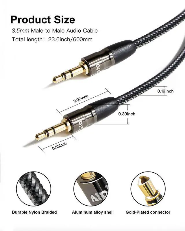 Alpluto premium 3.5MM cables are made from high quality 24k gold plated connectors that resist corrosion and reduce tarnish.