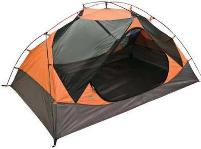 Chaos 3 person tent with Aluminum poles. Base size 5'6"x7'6". Great ventilation with mostly mesh walls, easy assembly with pole clips that quickly snap over the tent poles. Factory sealed fly and floor seams give best weather protection. Mesh roof increases ventilation and improves star gazing. Easy entry with 2 doors.