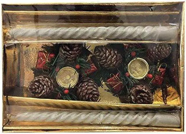 Christmas Eve Holiday Vintage Clip-On Candle Sticks with Pinecone Holder Set
