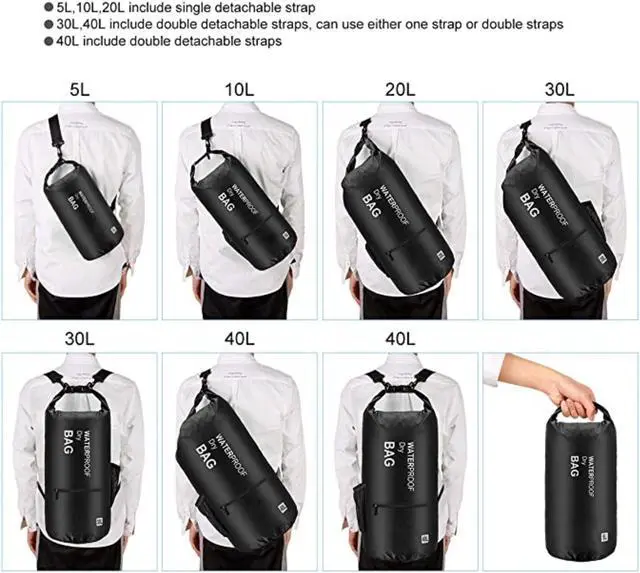 • Perfect for Multiple Purpose - Our dry bag comes in 6 colors and each color features 5 sizes (5L/10L/20L/30L/40L). Suitable for all ages people and different styles of outdoor sports. With fashion and simple design, our dry bag is a great choice as a gift for your families and friends in any festival.