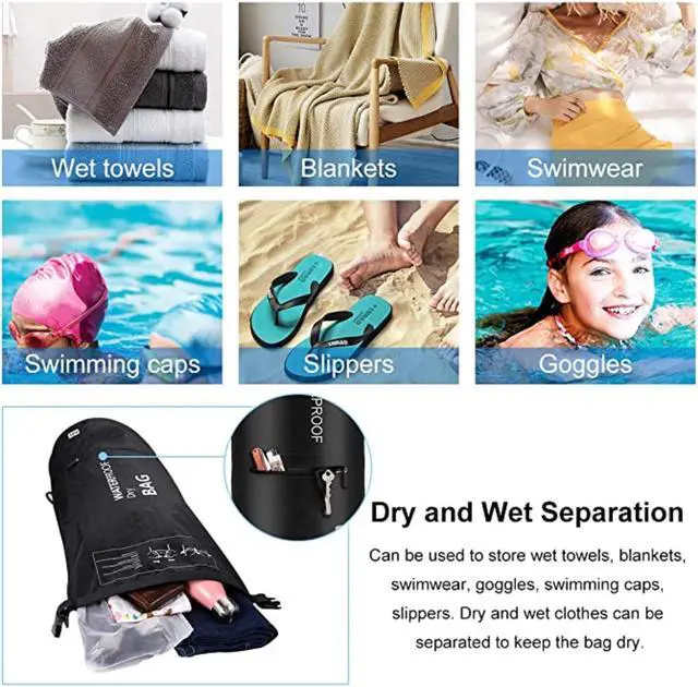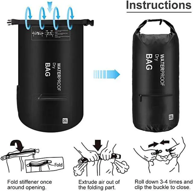 • Heavy Duty & Waterproof - Made of 0.7mm thick(more thicker than Ordinary) 500D PVC composite materials. Our waterproof dry bag features dual layer hot pressing technology to provide a superior seal to prevent water intrusion even the most abuse from wilderness. A perfect product for your outdoor sports: Fishing, Camping, Kayaking, Hiking, Beach, Boating. With roll-top closure, the durable waterproof bag has excellent performance of waterproof, dust-proof, snow-proof.