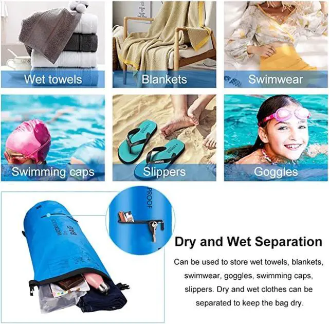 • Heavy Duty & Waterproof - Made of 0.7mm thick(more thicker than Ordinary) 500D PVC composite materials. Our waterproof dry bag features dual layer hot pressing technology to provide a superior seal to prevent water intrusion even the most abuse from wilderness. A perfect product for your outdoor sports: Fishing, Camping, Kayaking, Hiking, Beach, Boating. With roll-top closure, the durable waterproof bag has excellent performance of waterproof, dust-proof, snow-proof.