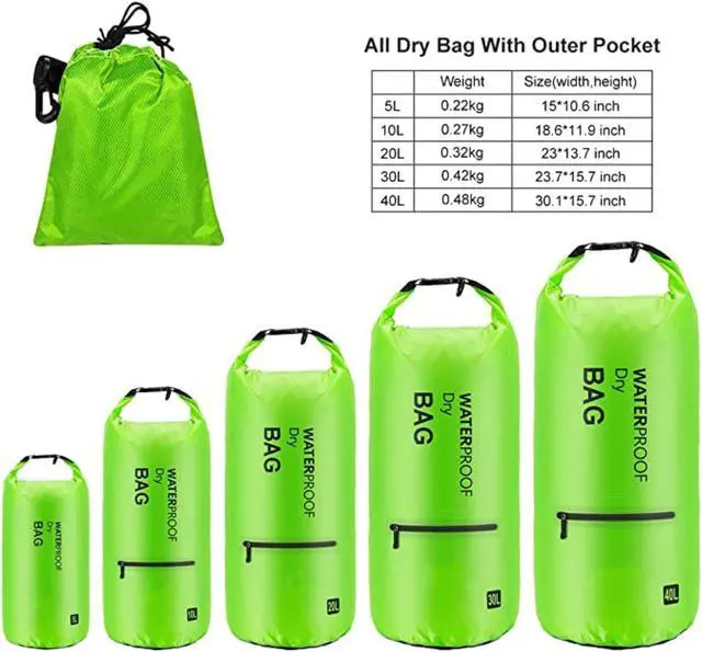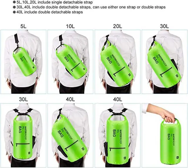 • Perfect for Multiple Purpose - Our dry bag comes in 6 colors and each color features 5 sizes (5L/10L/20L/30L/40L). Suitable for all ages people and different styles of outdoor sports. With fashion and simple design, our dry bag is a great choice as a gift for your families and friends in any festival.