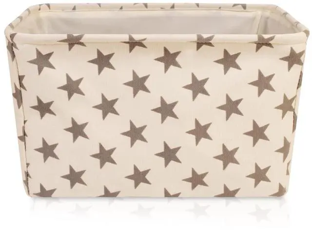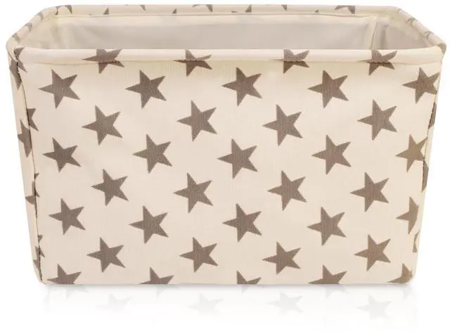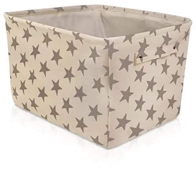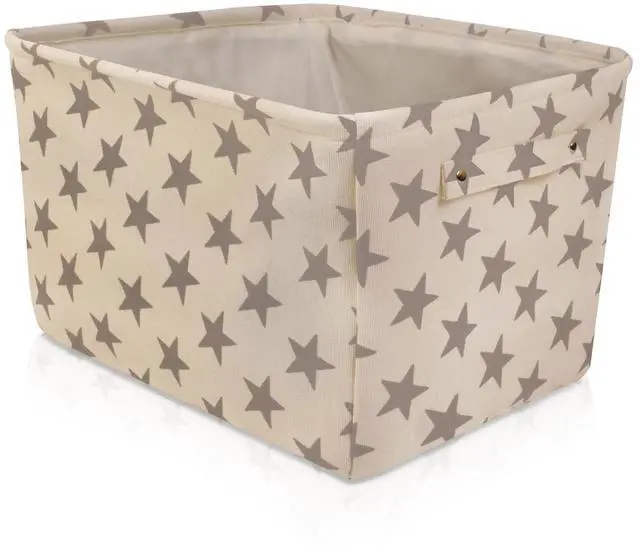 Canvas Storage Basket Rectangular with Handles 7.5''x16''x12.25'', Household Storage For Blankets, Towels, Toys - White with Gray Stars