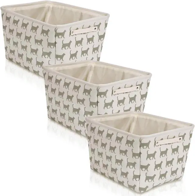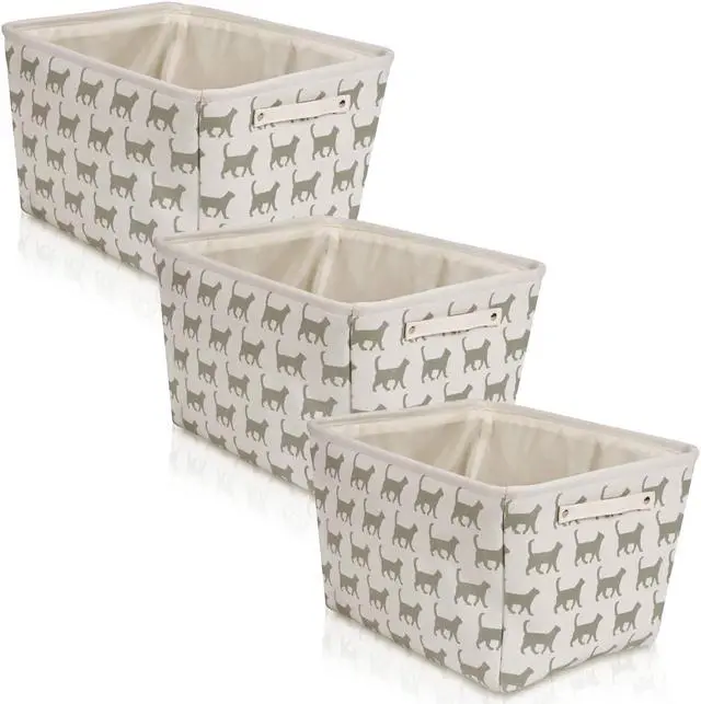 Canvas Storage Basket Rectangular with Handles 7.5''x16''x12.25'', Household Storage For Blankets, Towels, Toys - White with Cat Dog Print - 3 Pack