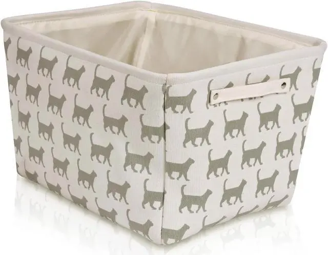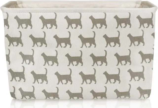 Premium Canvas Basket is perfect for storing away household goods, toys or laundry. The basket/hamper comes in a stylish color with Cat Print and Handles and is 16.5in x 12.5in x 7.5in. The basket is made of a high quality canvas material. It weighs less than half a kilogram but is very sturdy.