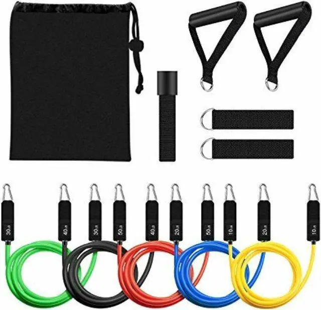 Your own personal gym: this resistance band set includes five exercise bands, one waterproof carry bag, one door anchor, two cushioned handles, two ankle straps and user manual to allow you to perform the widest variety of resistance training exercises possible. Great for toning your chest, ABS, biceps, triceps, shoulders, quads, glutes, buttocks, legs and knees.