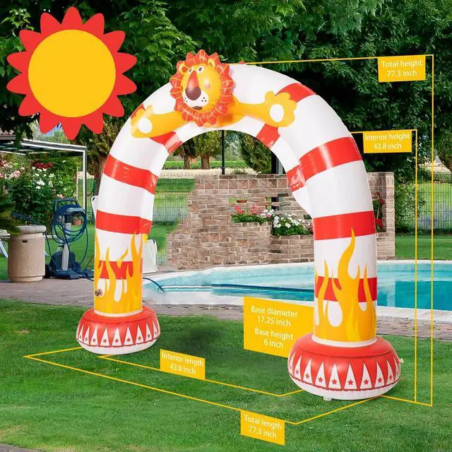 IDEAL PARTY DECORATION: Measures 77.3" x 17.25" x 63" to give kids ample play space. The lion arch sprinkler has a distinct theme, it is an ideal party prop and party decoration for Birthday party, tropical party and indoor or outdoor party.