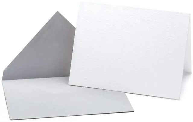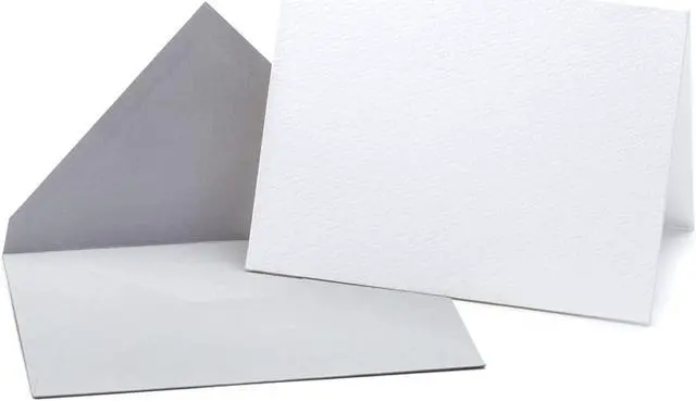 White Blank Cards & Stylish Grey Envelopes. Exceptionally thick card stock with an elegant texture. Card size: 4.625" x 6.125"