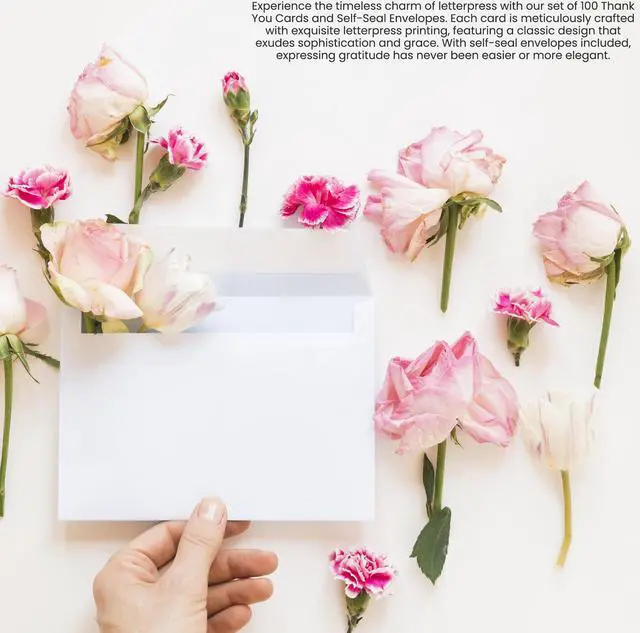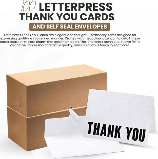 Thank You Cards with Envelopes 100 Pack 5.125 x 3.75 inches Plain Cards Envelopes Set Fine Premium Paper Plain White with Black