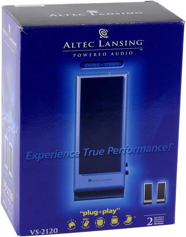 Your new PC rocks. Unfortunately, the tinny-sounding speakers that came with it are pretty uninspiring. It is time for a powered audio upgrade. Time to let your PC, CD, DVD and MP3 player blast your favorite music in full-stereo sound. For great sound at a great price, check out the Altec Lansing VS2120 system. The versatile speakers look great next to your new flat panel monitor and fire the sound directly toward you for a more vivid listening experience. Get the great sound you deserve with this affordable and compact powered audio system.