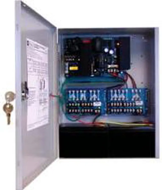 Model AL1024ULXPD16 power supply/charger converts a 115VAC 60Hz input, to 24VDC @ 10 amp supply current for Access Control application, 24VDC @ 8 amp supply current with 10 amp during alarm for Fire Alarm applications distributed via sixteen (16) fuse protected non power limited outputs. Model AL1024ULXPD16CB is a PTC protected version of this unit. Also known as -Altronix AL1024ULXPD16 Proprietary Power Supply - 110 V AC Input Voltage - Wall