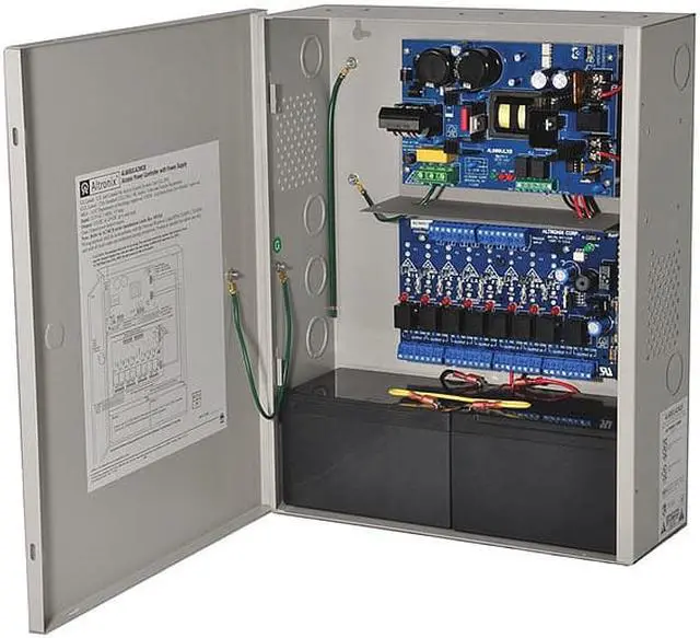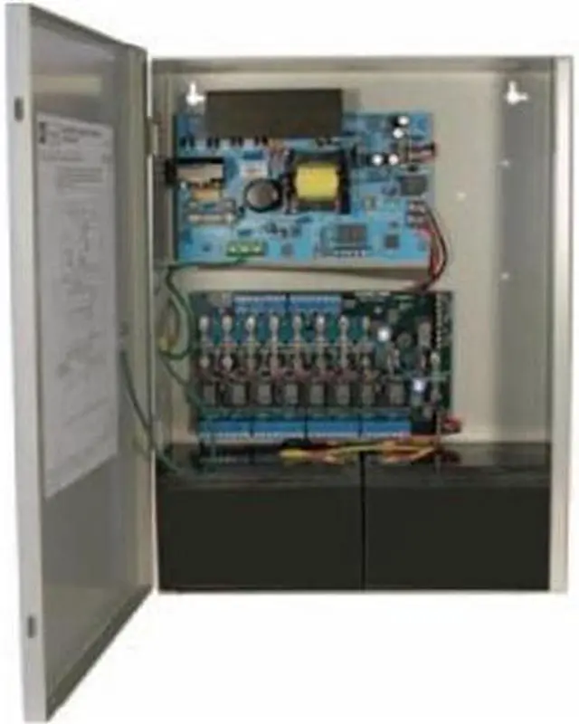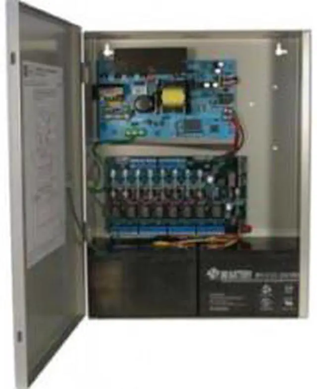Model AL600ULACMCB converts a 115VAC 60Hz input into eight (8) independently controlled 12VDC or 24VDC Class 2 Rated power limited PTC protected Fail-Safe and/or Fail-Secure outputs with a total of 6 amp continuous supply current. The fire alarm disconnect feature enables emergency egress in the event the fire alarm system is activated. It is individually selectable for any or all of the eight (8) outputs. Model AL600ULACM is a fuse protected version of this unit.