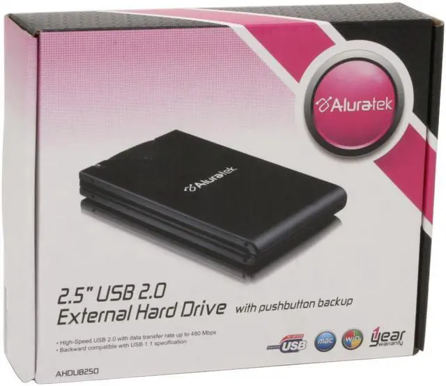 | Features | High-Speed USB 2.0 with data transfer speed up to 480 Mbps Backward compatible with USB 1.1 specification One Push Button for Backup Bus-Powered - AC adapter not required Plug-n-Play, Hot swappable, and Hot Pluggable Operating System: Windows 98SE, ME, 2000, and XP; Mac OS 9.0 or later |