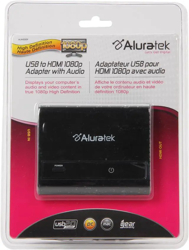 Aluratek AUH000F USB to HDMI 1080p Converter Adapter with Audio