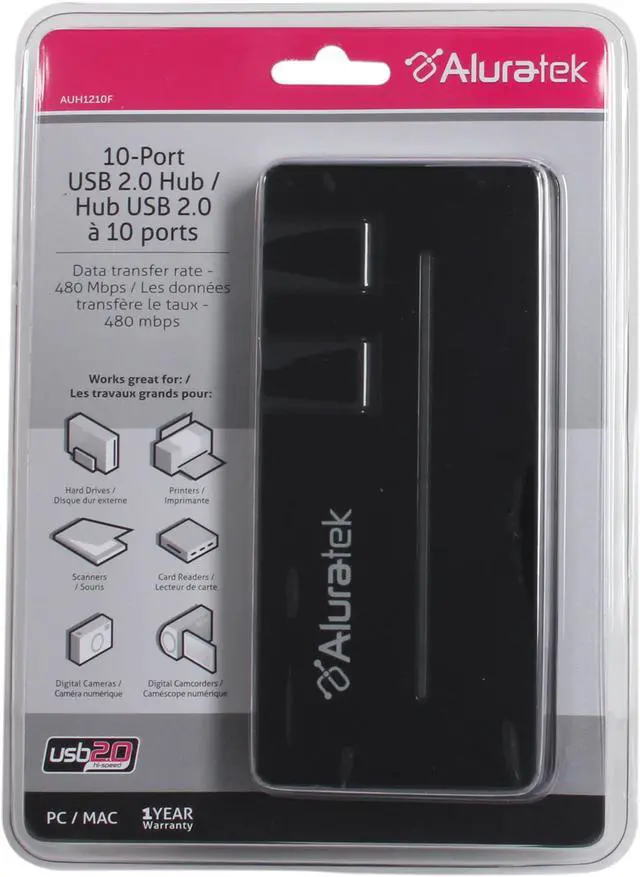10 USB PortsThe Aluratek AUH1210F USB 2.0 Hub features 10 USB ports for easy access to a variety of USB devices such as your storage device, scanner, printer, external optical drive, and digital camera.